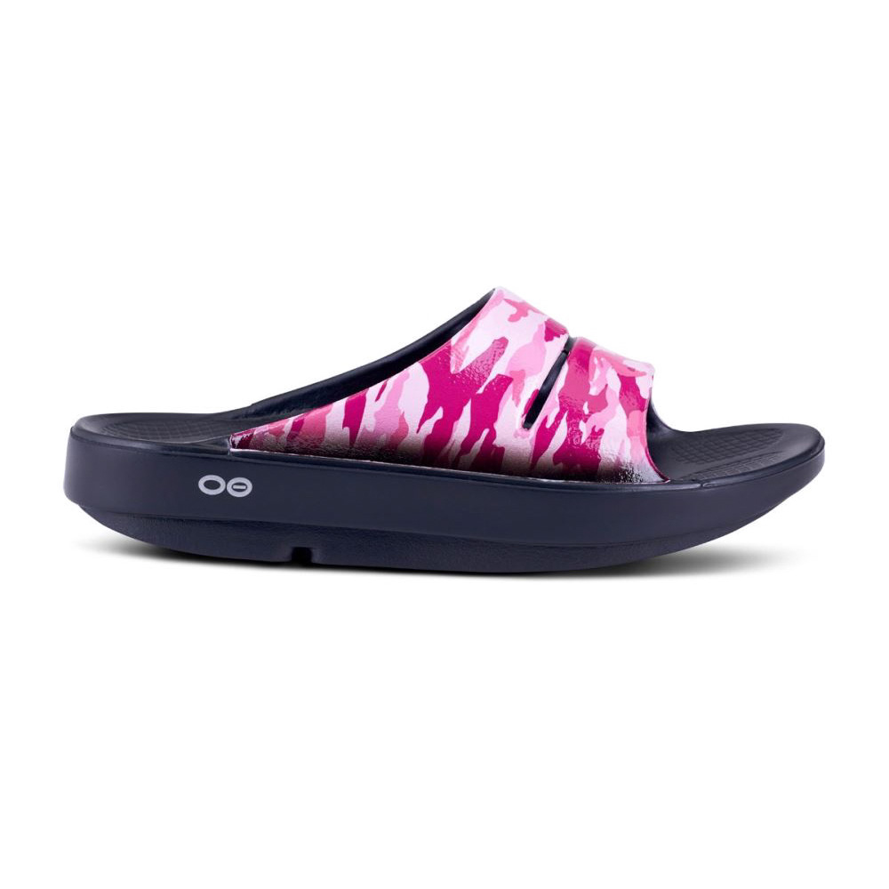 OOFOS Women's OOahh Luxe Slide Sandal - Project Pink Camo